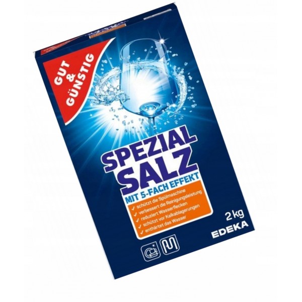 Vokiška, originali G&G indaplovių druska puikiai apsaugo jūsų indaplovę nuo kalkių nuosėdų tiek ant išplautų indų, tiek indaplovės viduje. Puiki, stambiagrūdė, aukštos kokybės druska, visiškai ištirpstanti vandenyje. Efektyviai minkština vandenį, pagerina ploviklių efektyvumą, apsaugo indaplovę ir indus nuo kalkių nuosėdų, užkirsdama kelią dryžių susidarymui. Reguliarus druskos naudojimas užtikrina tinkamą indaplovės veikimą ir apsaugo nuo kalkių nuosėdų susidarymo. Tinka visoms indaplovėms.